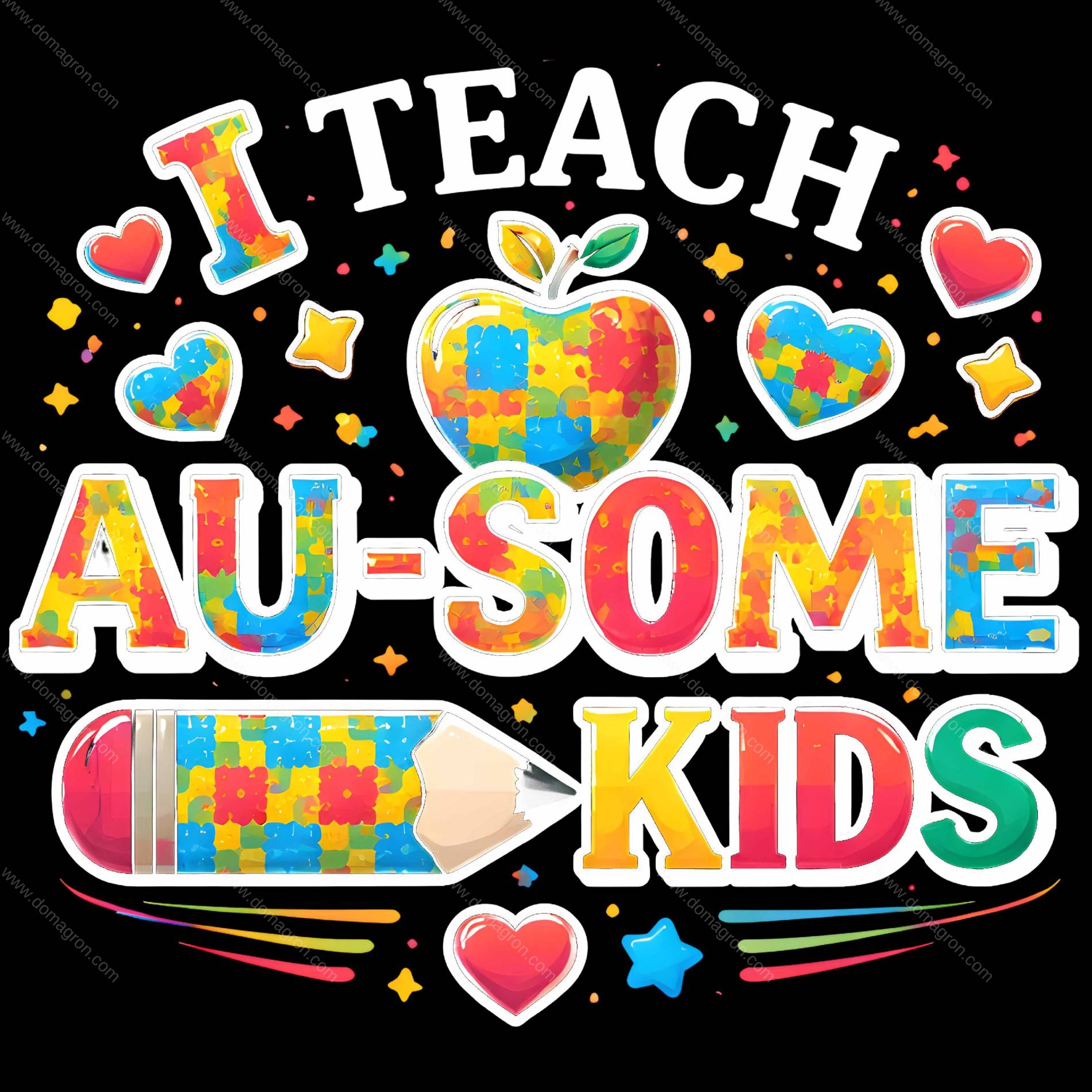 I Teach Au-Some Kids Autism Awareness Direct to Film (DTF) Heat Transfer F-1526