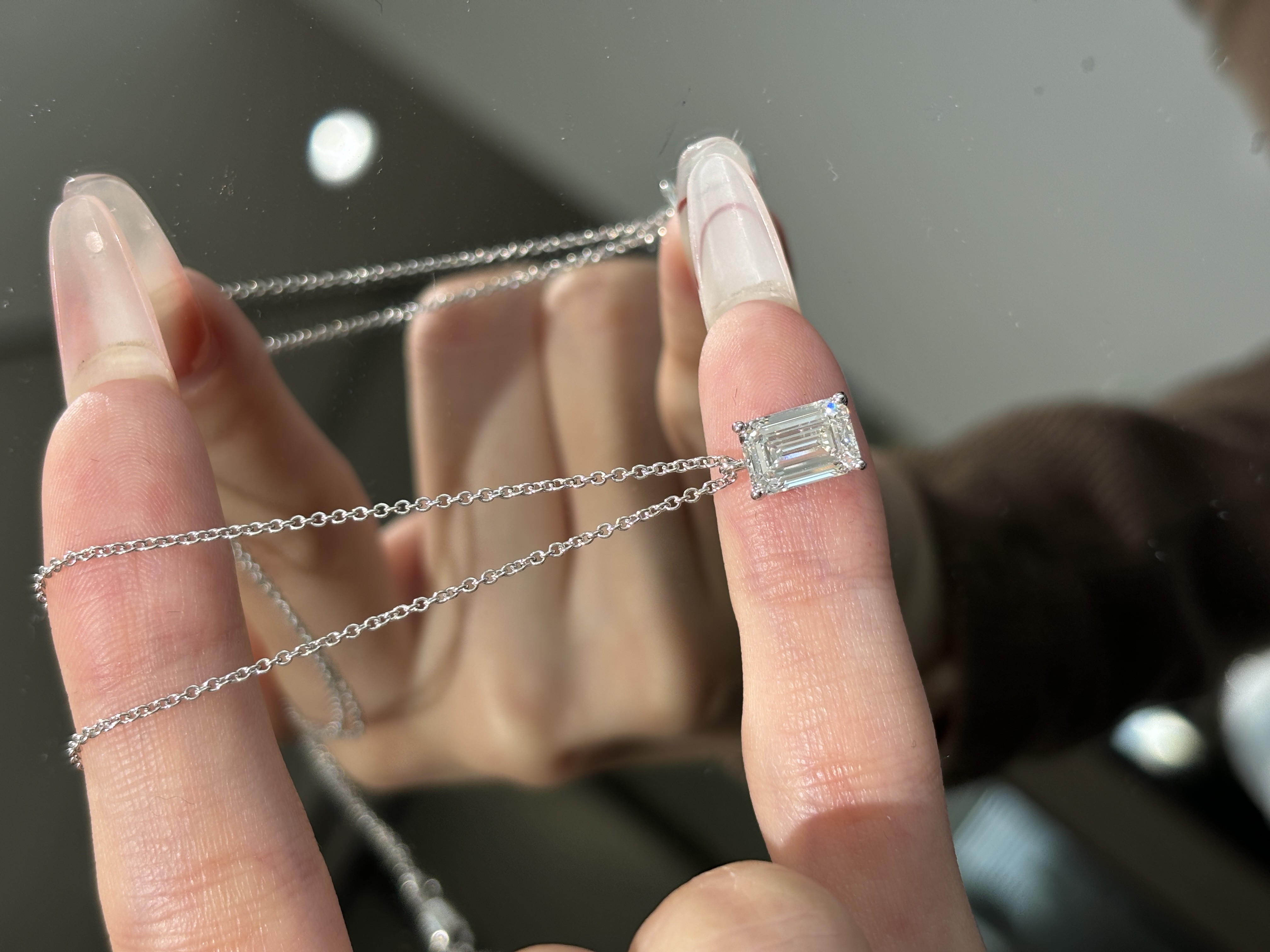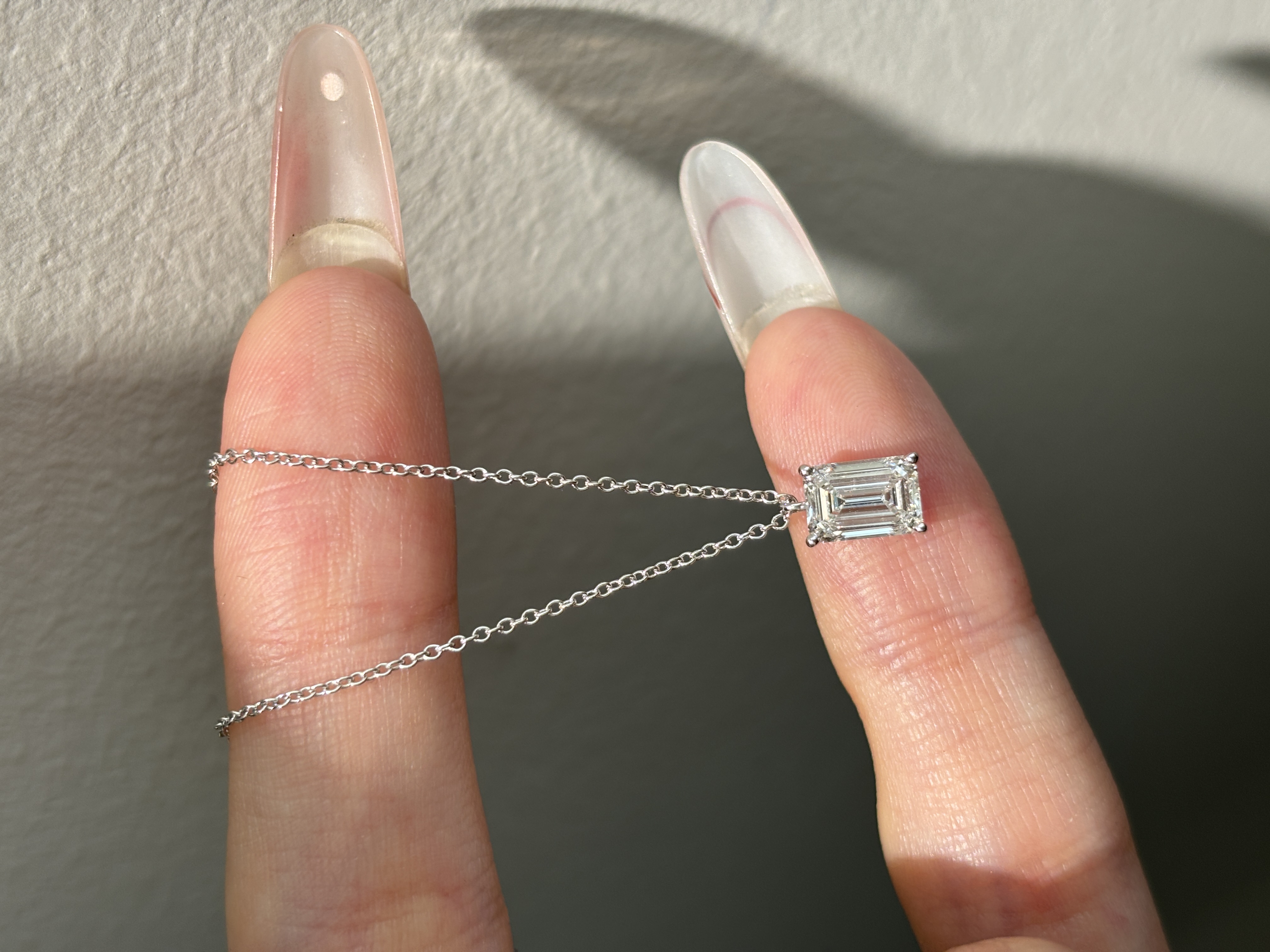 2CT Emerald Cut Lab Grown Diamond Solitaire Pendant in 18K White Glod